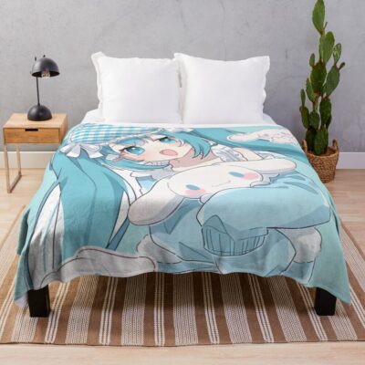 Miku And Cinnamoroll With Adorable Chibi Bows Throw Blanket